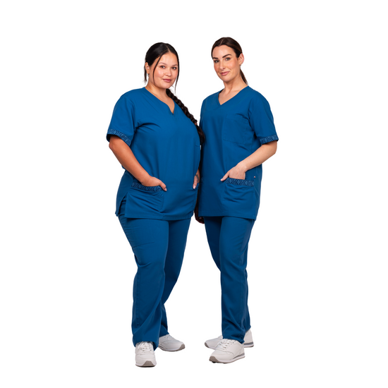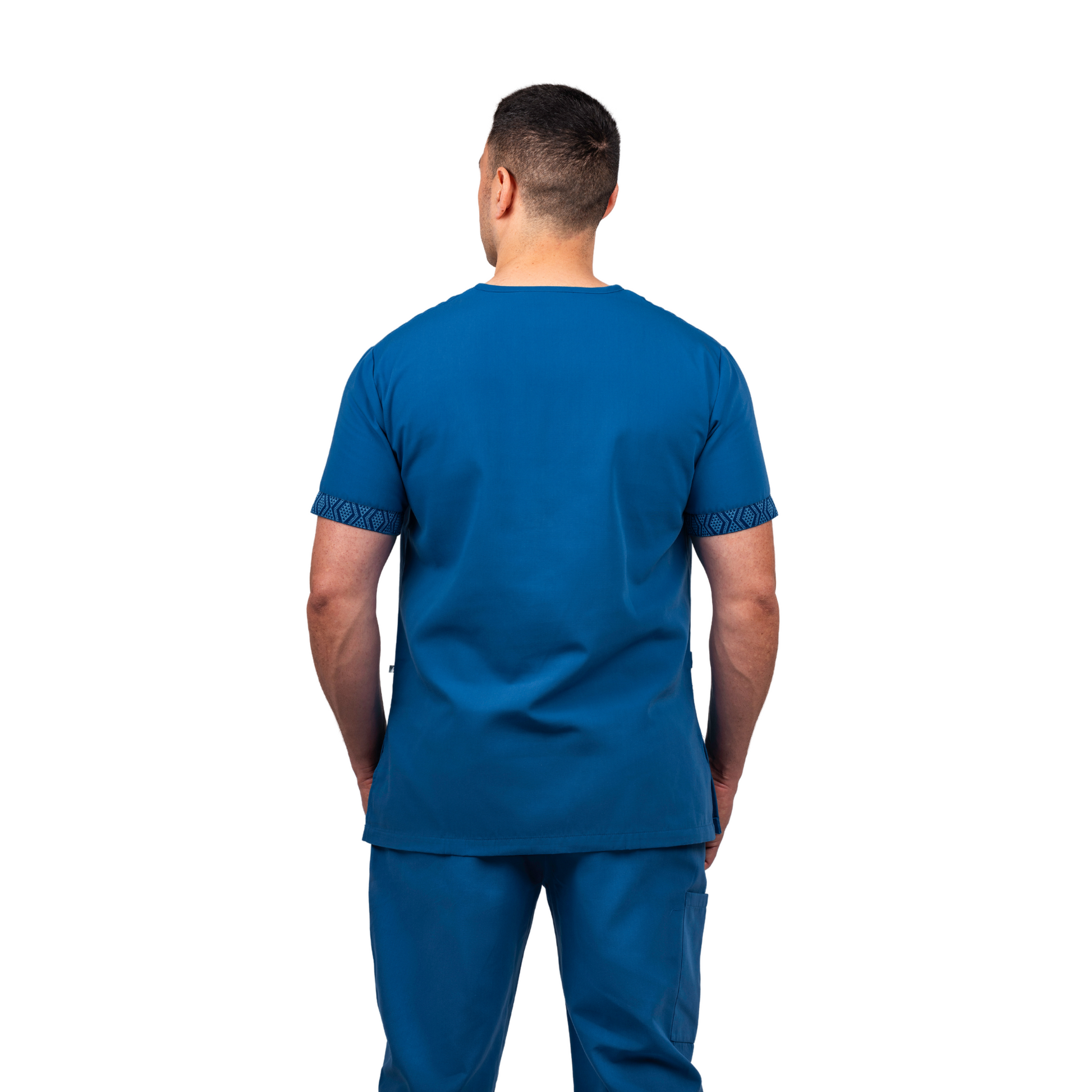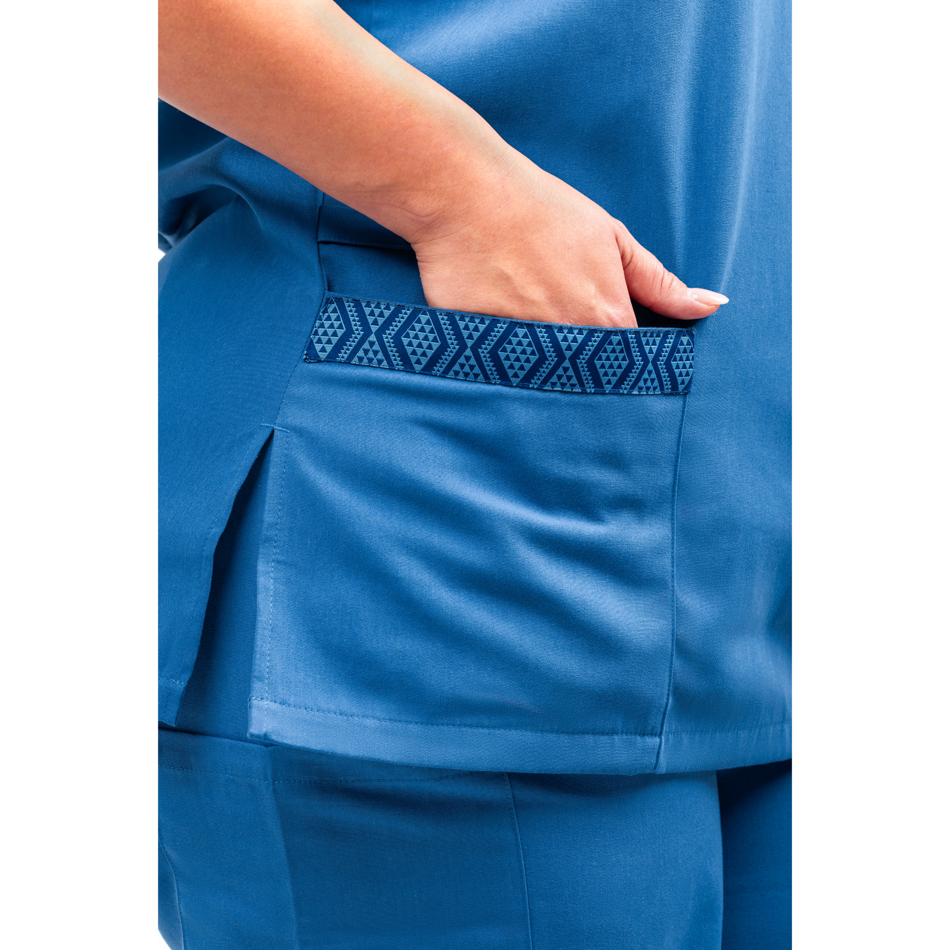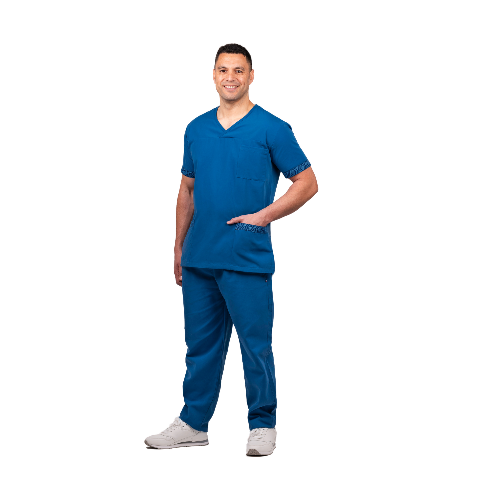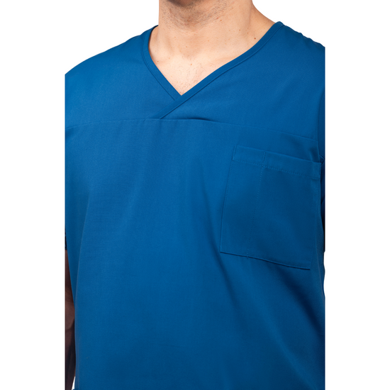 The MR35 Unisex Scrub Top is designed for demanding theatre environments, featuring a chest pocket with a pen divider, a side fabric loop for I.D. tags, and hidden pockets for efficiency. Made from a durable polyester-cotton blend, it offers breathable comfort and retains its colour through multiple high-temperature washes.