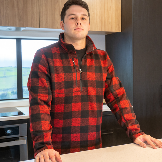 Possibly the best ultimate kiwi fleece! Built tough, long lasting, comfortable and built to be branded. Available in the classic kiwi red or blue checkered pattern. The soft brushed inside fleece provides extreme comfort and excellent breathability. Also your valuables will stay safe with the zipped shoulder pocket.