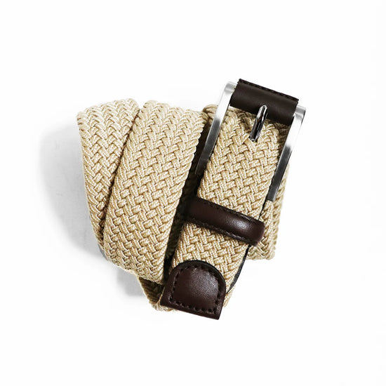 Versatile and comfortable, this stretch braid belt can be adjusted for the perfect fit every time. Complemented with leather detailing on the tip and buckle.