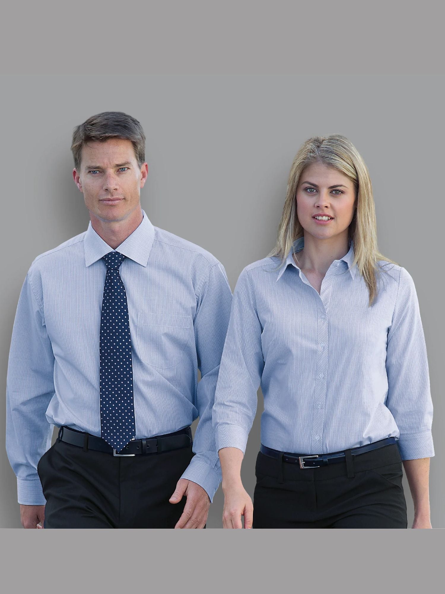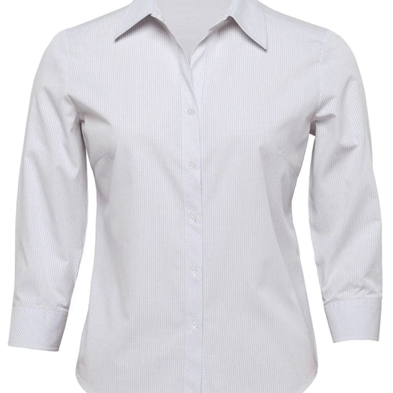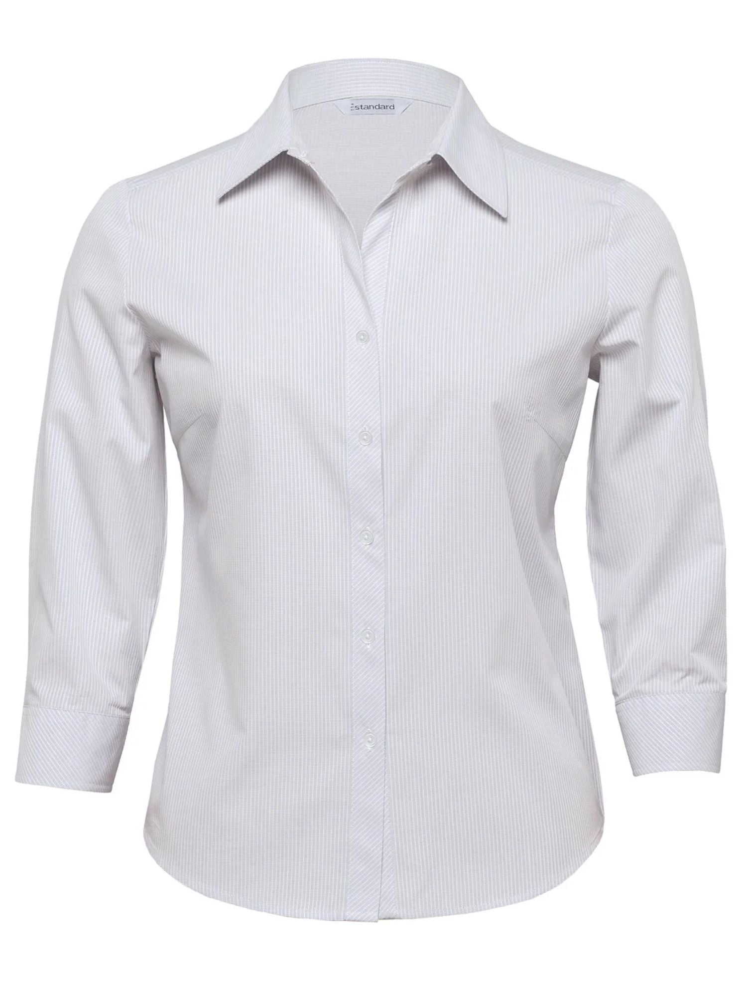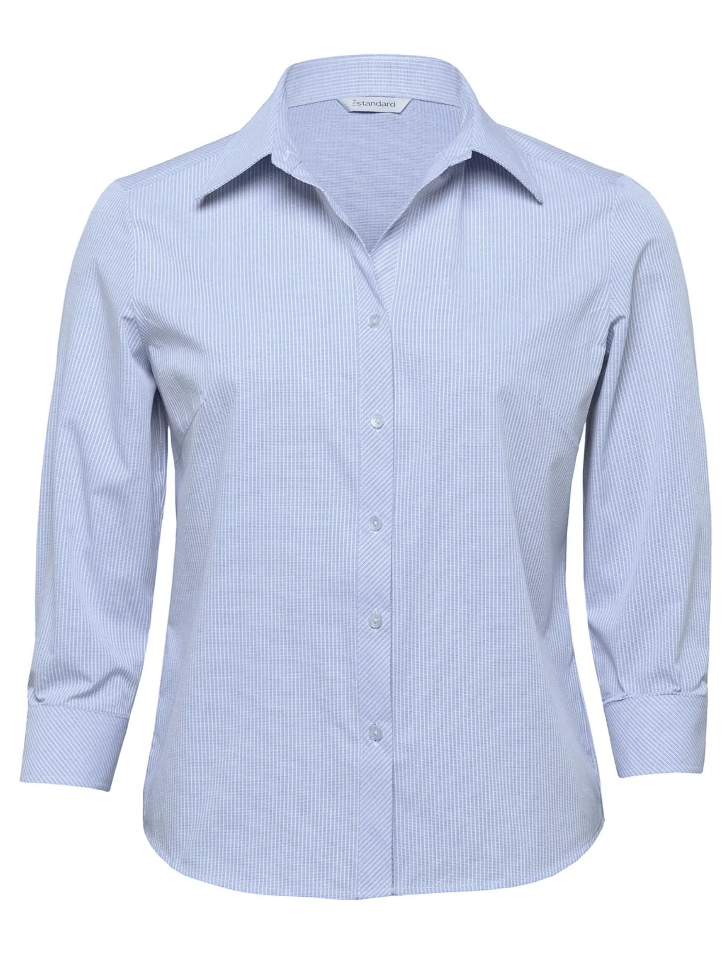 65% Polyester 35% cotton square wave 3/4 sleeve shirt. Shaped body detailing front and back.