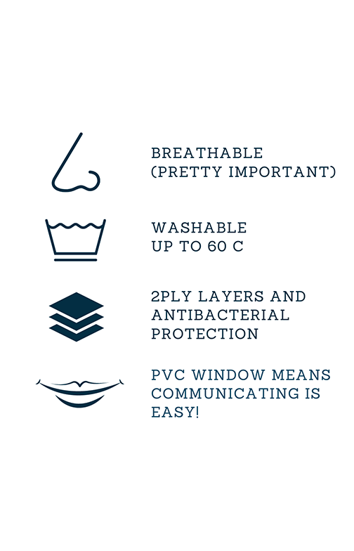 Made from poly-cotton anti-bacterial treated fabric with soft elasticated ear loops allow for one size fits all.