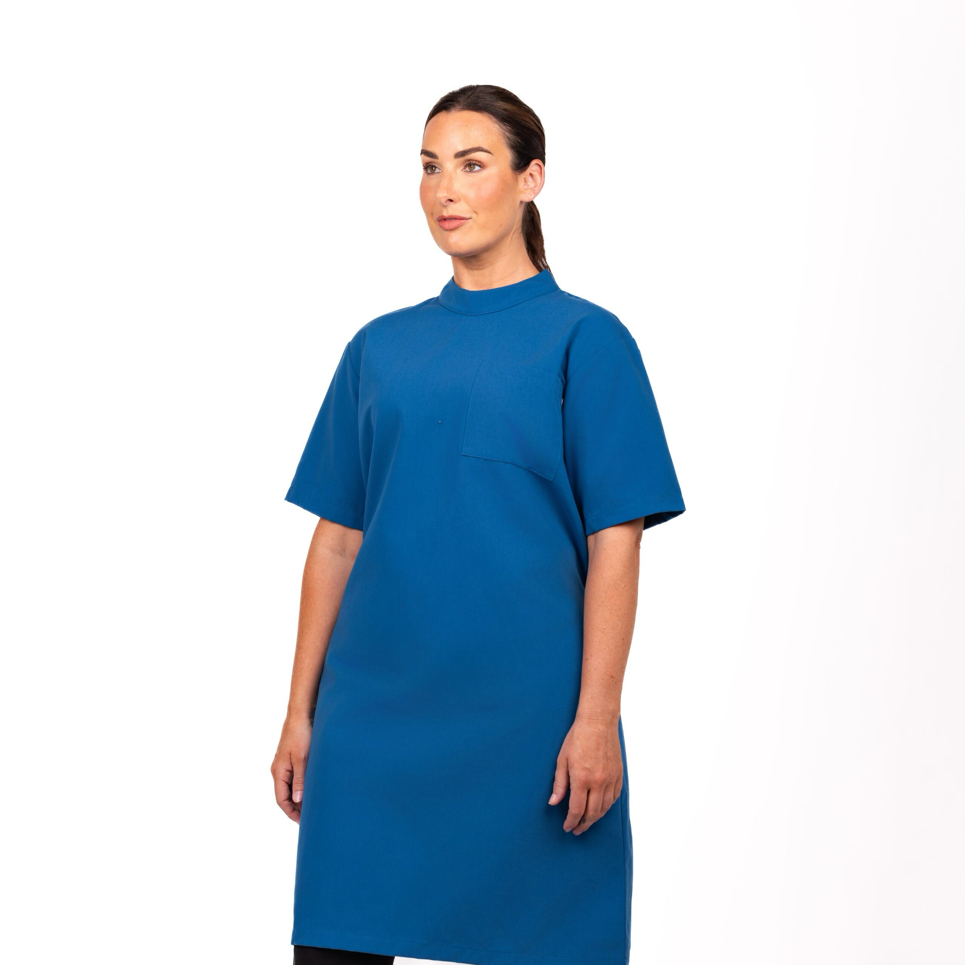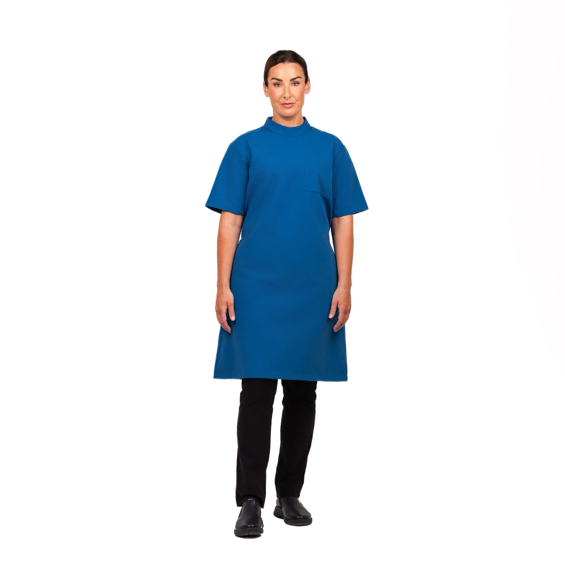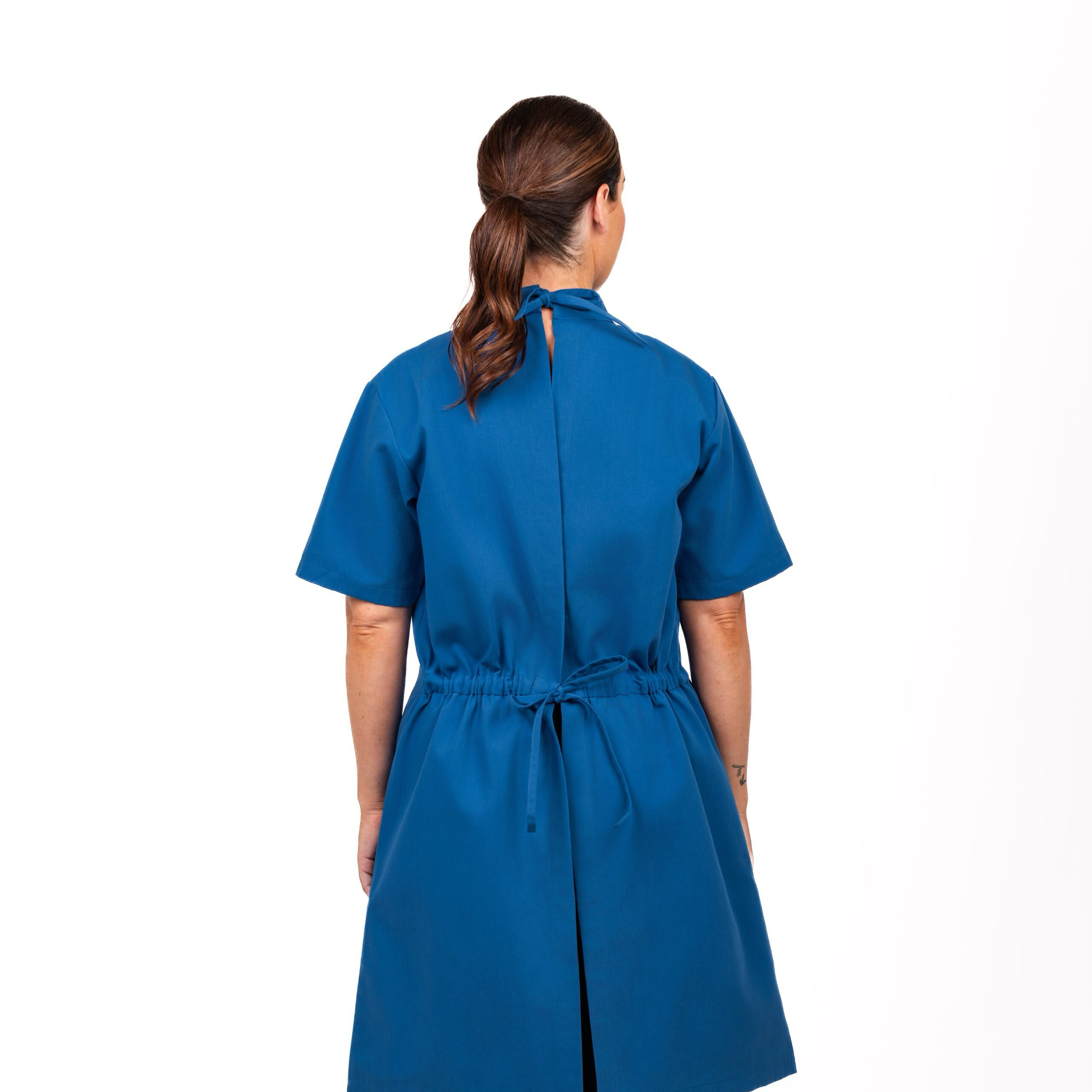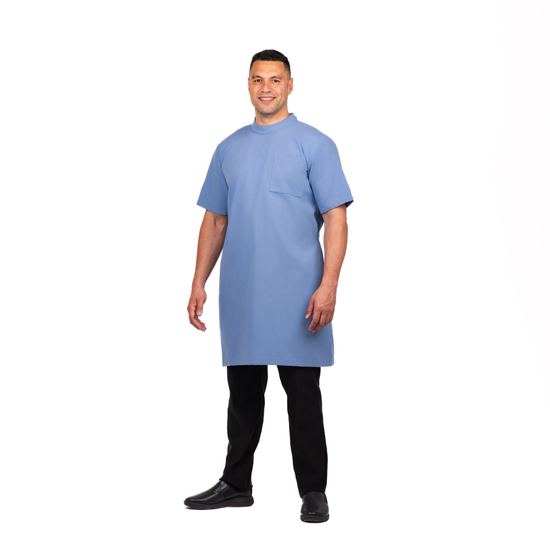 Our Washable Dental Gown has short sleeves and adjustable ties at back waist and neck for the perfect fit. Providing knee length coverage against splatters and stains while working.