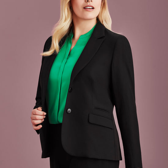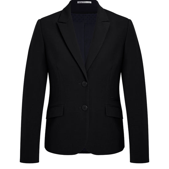 This women's siena two button mid length jacket is tailored from soft, easy care polyester viscose with added stretch for comfort and ease of movement. It features a left hand side narrow jet pocket and two functional hip flap pockets as well as being full stretch lined, it is a perfect tailored more modern look.