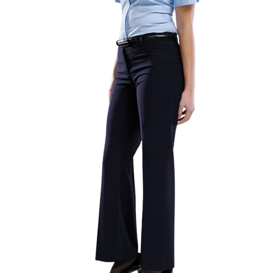 Our Contemporary Pants are a mid-rise, bootleg-fit style. The front features top seam pockets, a back waist panel with inseam pockets, and a button closure. A fly front with button fastening and a belt loop waistband completes this look.