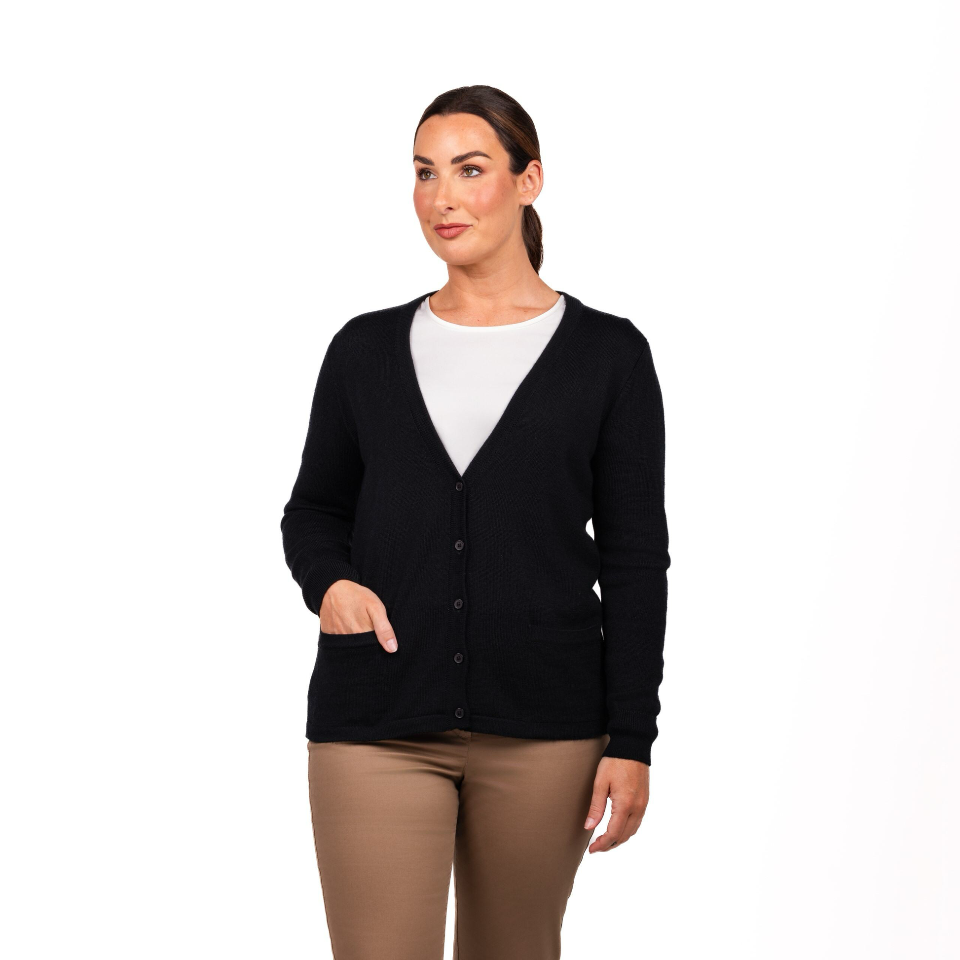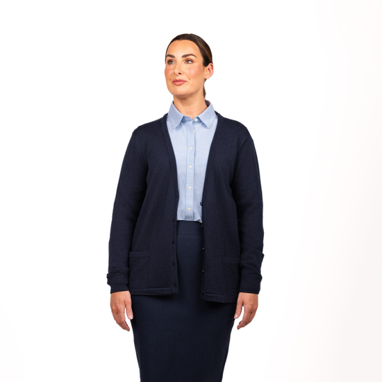 A staple garment for the wardrobe that features a button up front, two side pockets and rib hem finishing's for a snug fit. Keep warm while remaining professional in the office, this cardigan is a winter go to.