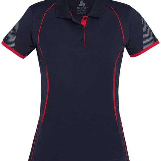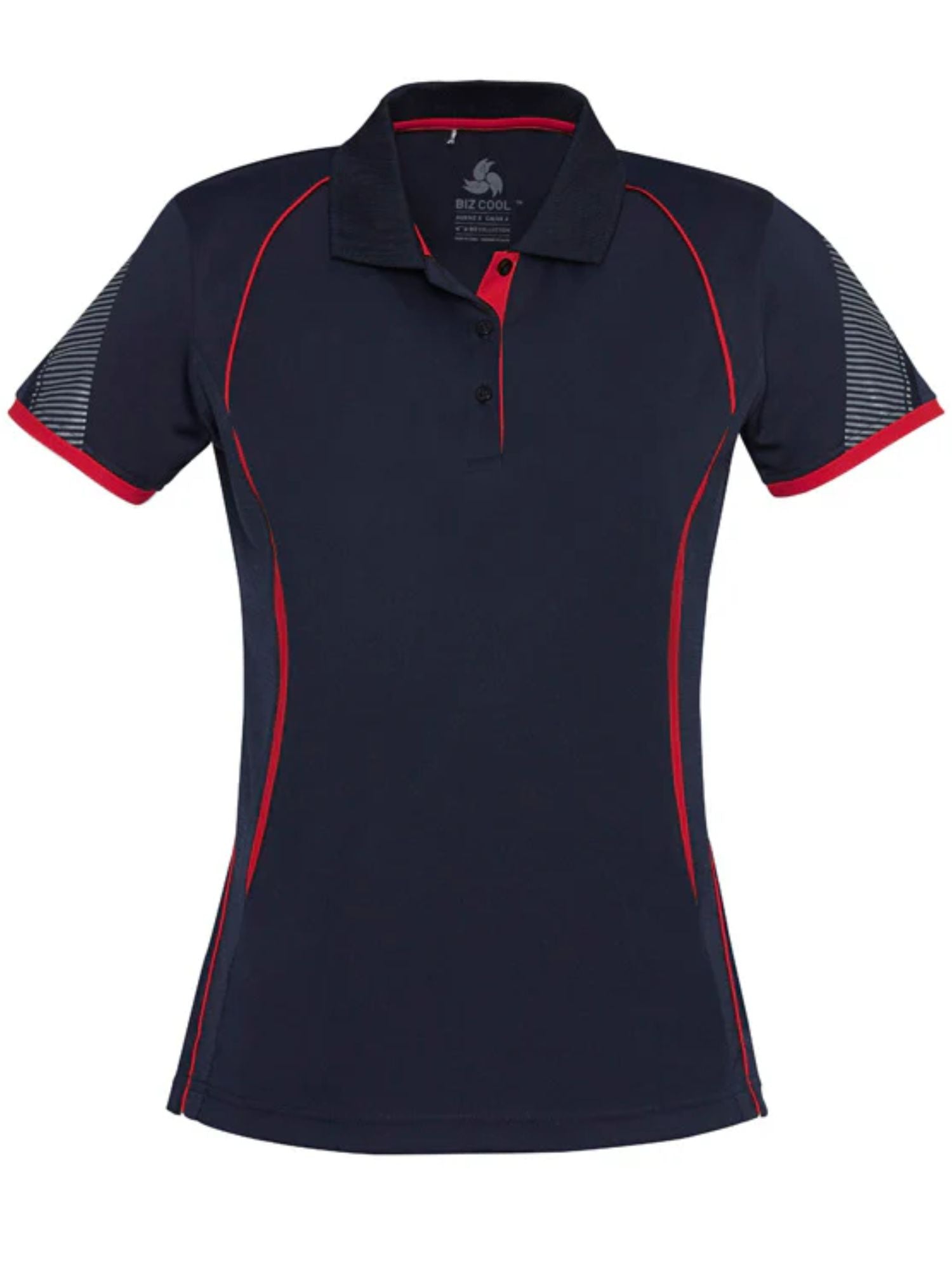 Women's Razor Polo features contrast panels and piping, knitted collar and side seam splits for mobility