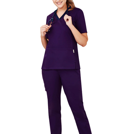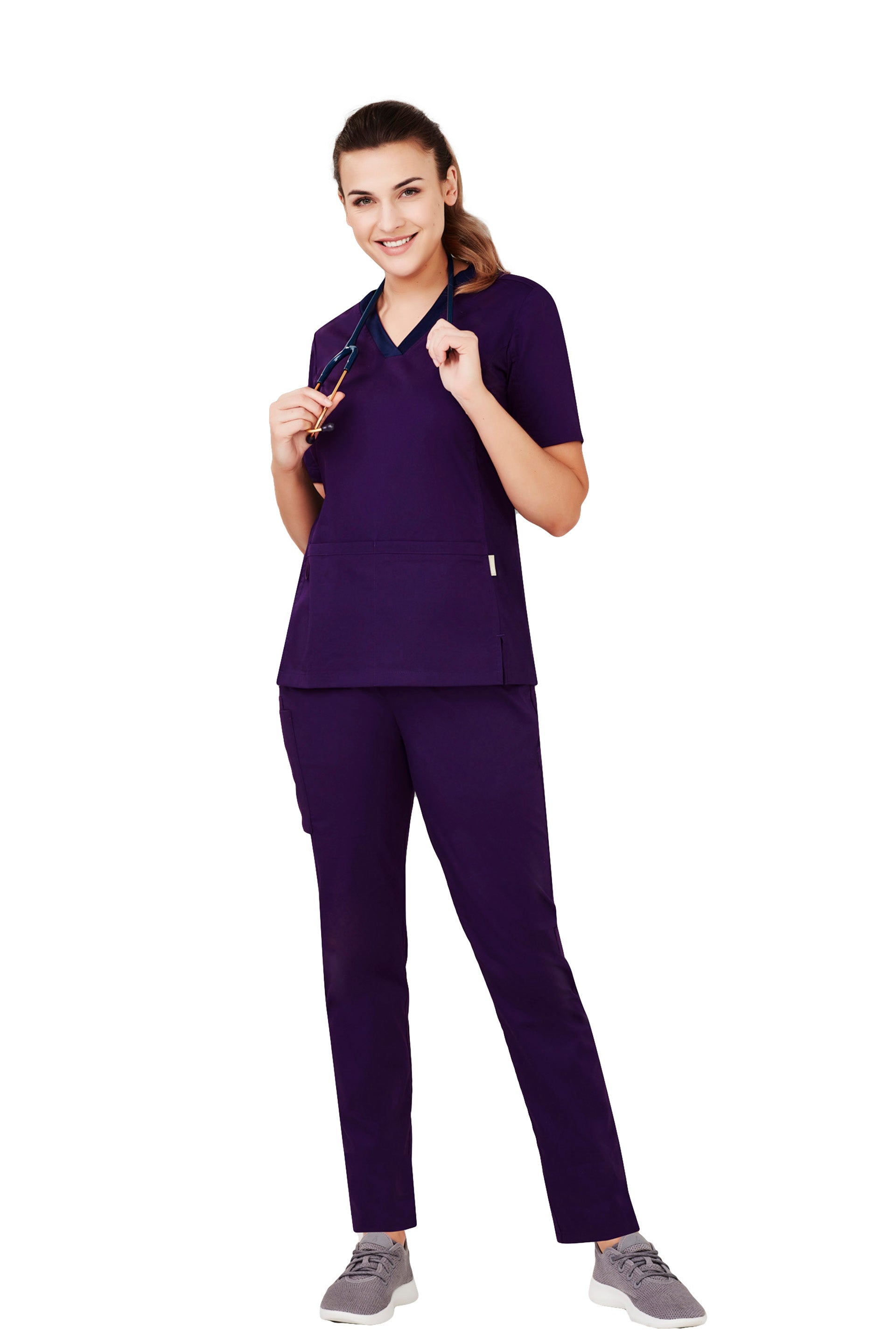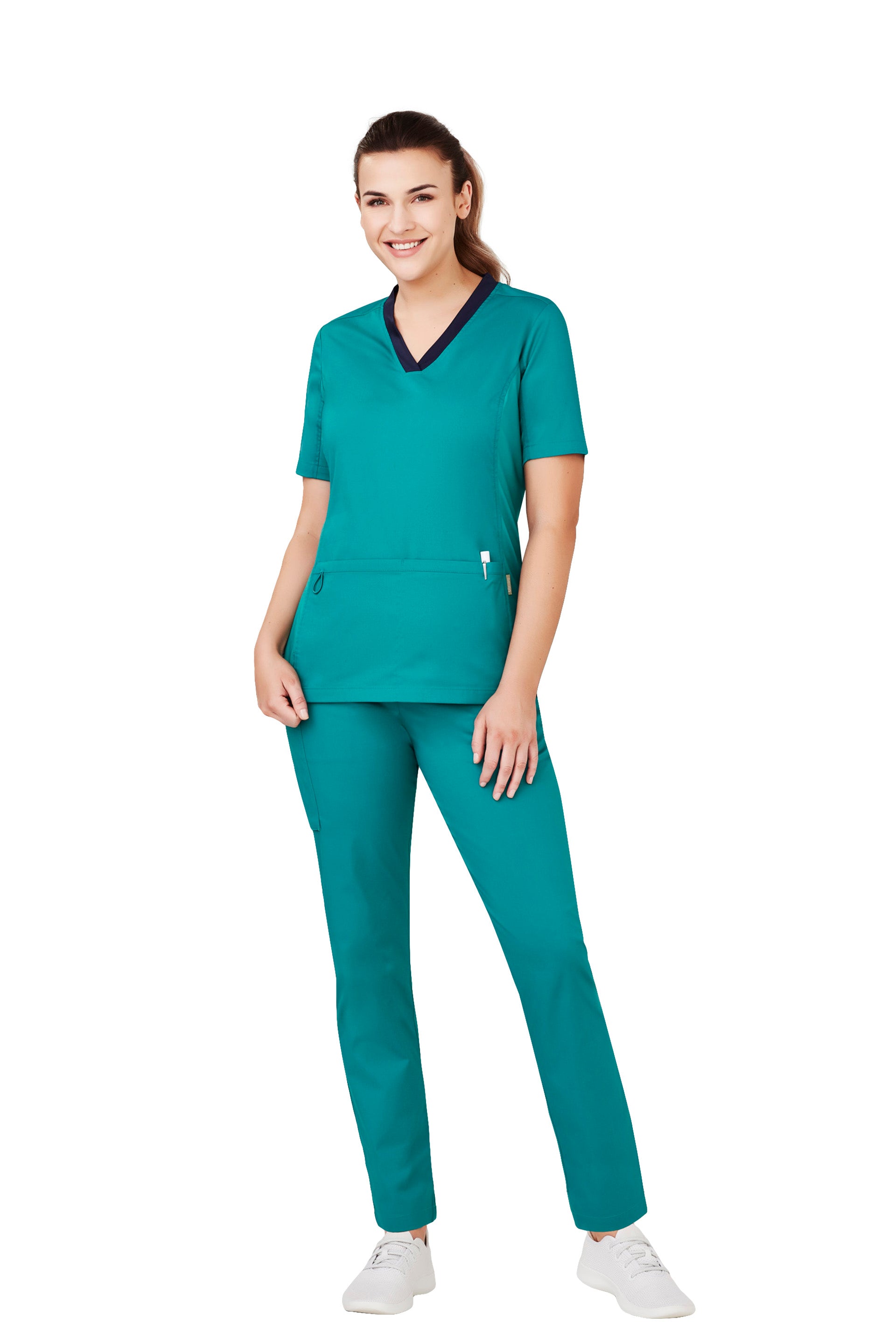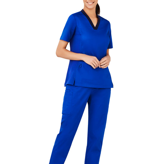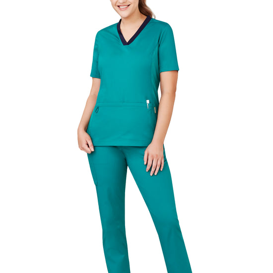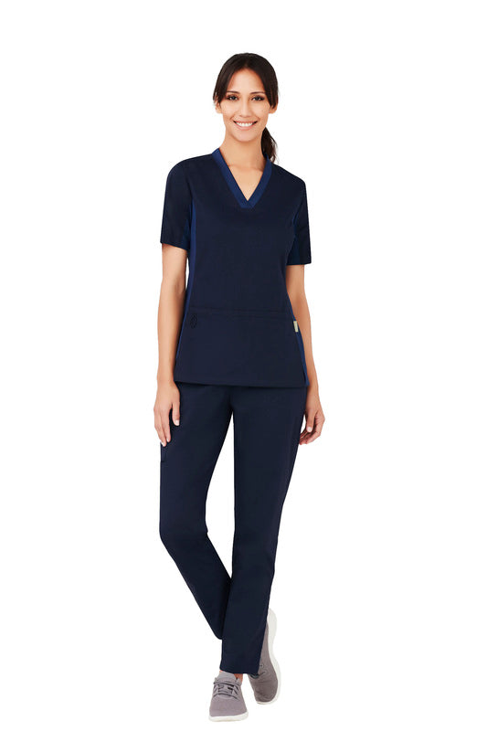 Our Women's Riley Straight Leg Scrub Pant are designed whilst still giving a clean look. Made using a cotton rich fabric for breathability and soft hand feel. Featuring a navy knit waistband with a drawstring for extra comfort and security to get you through the day with ease.