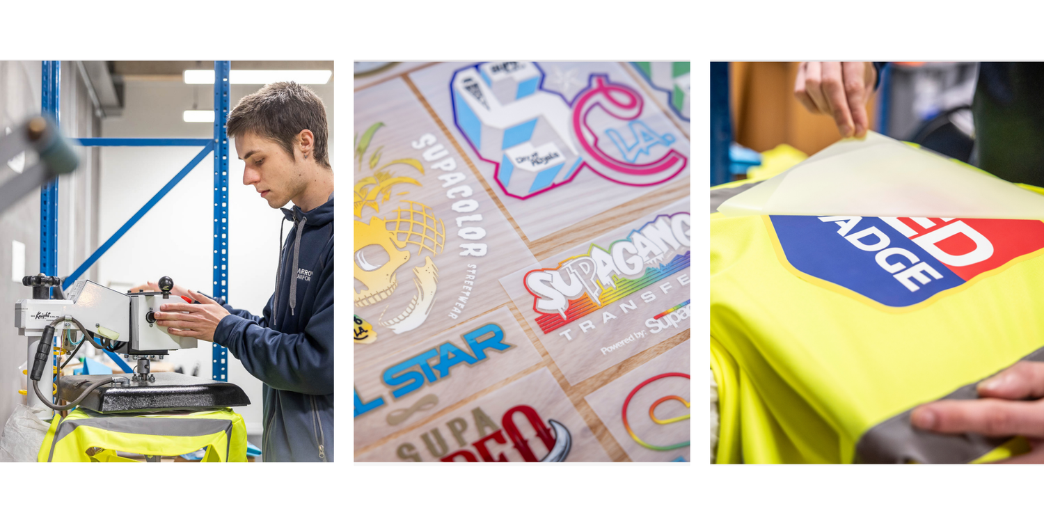 Your logo is printed onto transfer film, ready for pressing. You can order extras to use across future orders and avoid reset fees — just let us know.